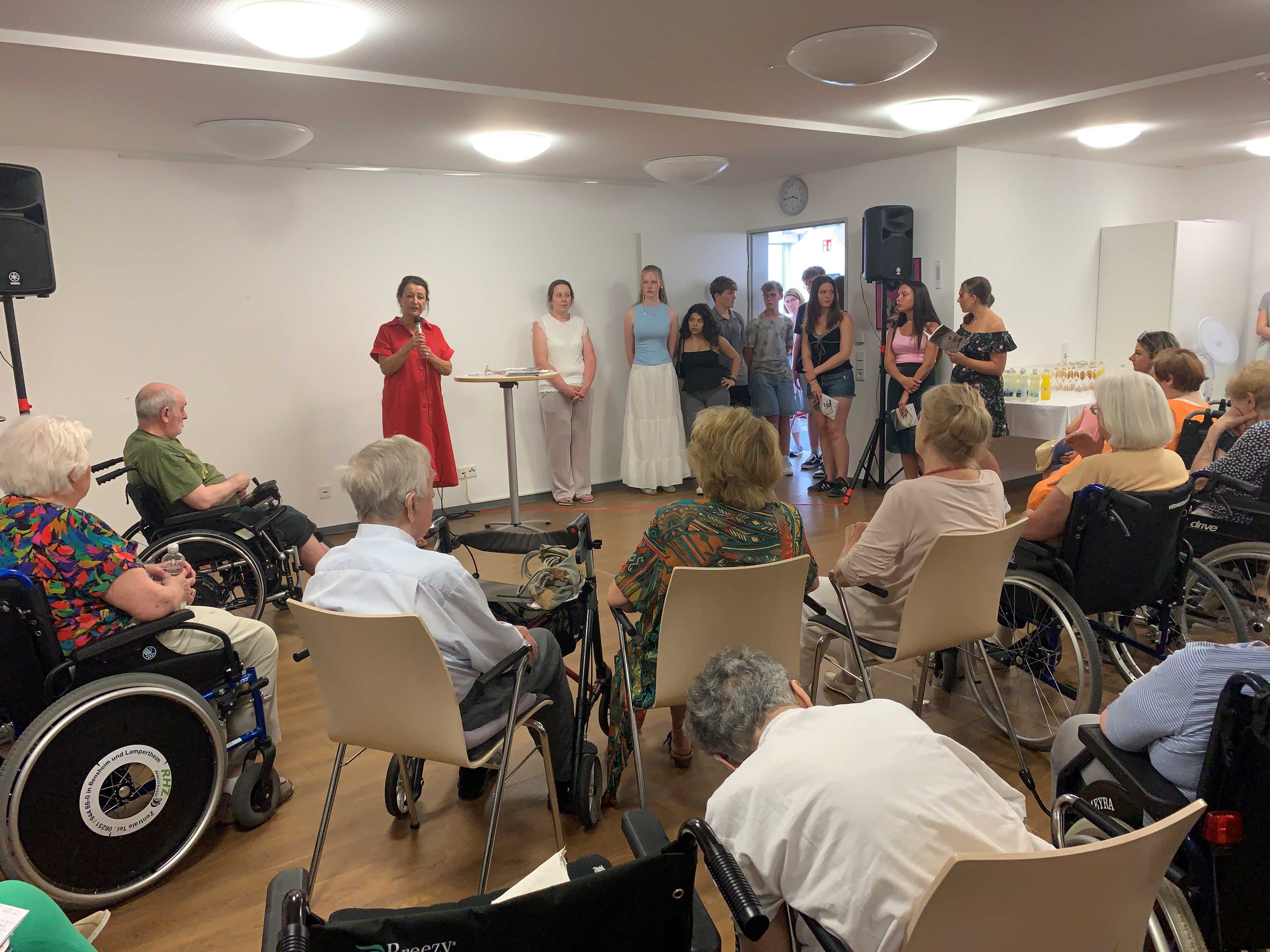 Silke Weimar-Ekdur, Direktorin des Lessing-Gymnasiums in Lampertheim, und Stefanie Klee, Lehrerin und Projektleiterin, stellten am 1.7.2025 im St.Vinzenz gemeinsam mit den jungen Menschen das Buch „Erinnerungen für die Ewigkeit“ vor. „Lernen durch Engagement“ verbunden mit einem Buchprojekt, war für alle Beteiligten eine bewegende Erfahrung. Claudia Ebner, St. Vinzenz, und Stefanie Rhein, Direktorin des Caritasverbands Darmstadt, lobten die einfühlsame Arbeit der jungen Menschen und hoben hervor, wieviel Geschichte und Lebensweisheit in jedem Menschen steckt, wenn man nur zuhört.